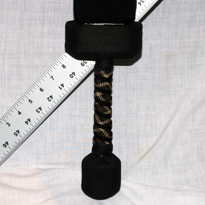 We place metal under the rope to add counter balance and make the handle rectangular for better control.
